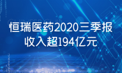 江蘇恒瑞醫(yī)藥股份有限公司(“恒瑞醫(yī)藥”,股票代碼:600276)發(fā)布2020年第三季度報告。公告顯示,2020年1-9月實現(xiàn)營收19,413,125,067.8