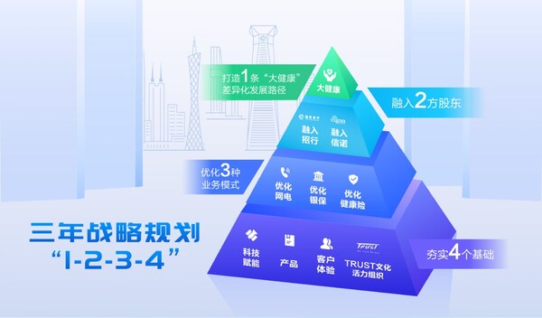 升級發(fā)展戰(zhàn)略方面,招商信諾啟動了"1-2-3-4"金字塔戰(zhàn)略來實現(xiàn)公司"模式領(lǐng)先、特色鮮明、服務(wù)卓越、國內(nèi)一流"的愿景。戰(zhàn)略核心是進階升級"大健康全球戰(zhàn)略",引領(lǐng)招商信諾緊跟大健康時代的發(fā)展脈搏,穩(wěn)健地走出企業(yè)發(fā)展"第二曲線"。