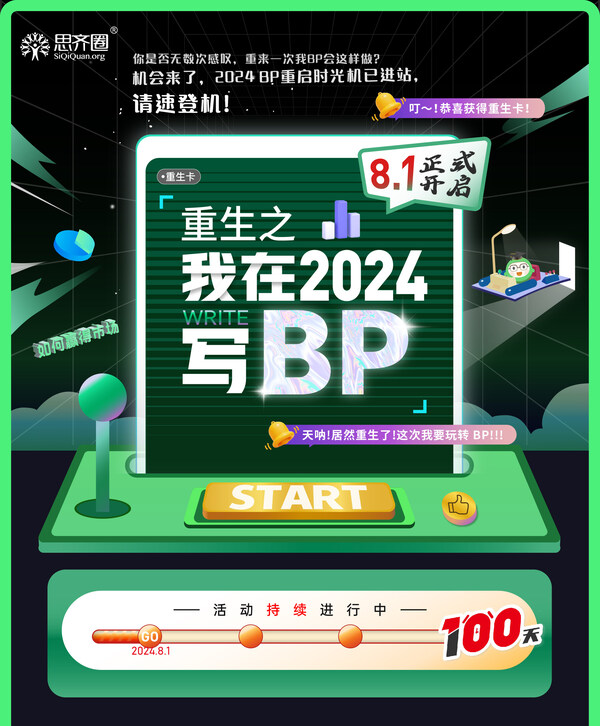 為了幫助產(chǎn)品經(jīng)理更得心應(yīng)手地應(yīng)對(duì)市場(chǎng)新挑戰(zhàn),更順利地制定出滿意的BP,8月1日,由思齊圈主辦的"重生之我在2024寫BP"主題活動(dòng)(以下簡(jiǎn)稱"100天BP季")正式上線。