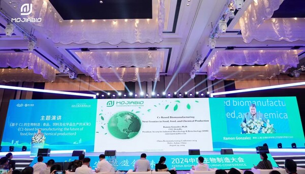 上海2024年8月29日 /美通社/ -- 8月28日至29日,首屆中國生物制造大會(huì)在安徽省合肥市成功舉辦,此次盛會(huì)匯聚了政府高層、頂尖學(xué)者、產(chǎn)業(yè)精英及投融資界翹楚,共同探索生物制造領(lǐng)域的無限可能。摩珈生物,作為生物制造領(lǐng)域的璀璨新星,受邀由其首席科學(xué)官Ramon Gonzalez教授在大會(huì)上發(fā)表了題為"C1-Based Biomanufacturing Next Frontier of Food, Feed, and Chemical Production "的主旨演講。Gonzalez教授以其深厚的學(xué)術(shù)造詣與前瞻性的視野,為與會(huì)者描繪了一幅基于C1生物制造技術(shù)在食品、飼料和化學(xué)品生產(chǎn)中的前沿應(yīng)用的未來藍(lán)圖。