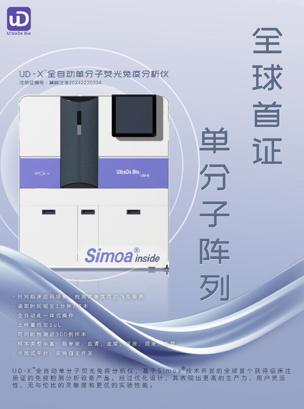 上海 2024年9月6日 /美通社/ -- 優(yōu)抵生物近日宣布:其核心產(chǎn)品UD-X?全自動單分子熒光免疫分析儀成功獲批醫(yī)療器械注冊證(注冊證編號:冀械注準(zhǔn)20242220334),現(xiàn)已正式上市。 UD-X?全自動單分子熒光免疫分析儀將與即將獲批的配套檢測試劑盒聯(lián)合使用,旨在滿足臨床診斷及社區(qū)篩查中對各類體液樣本中痕量蛋白標(biāo)志物進(jìn)行飛克級別靈敏度定性及定量檢測的需求。