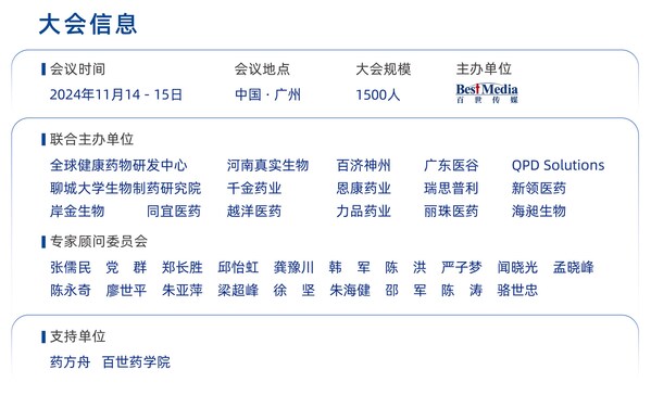 本屆大會主題【創(chuàng)新驅(qū)動研發(fā),合作共創(chuàng)未來】,大會持續(xù)2天,將攜手100余位制藥領(lǐng)域大咖精英,通過9大論壇:新藥發(fā)現(xiàn)與設(shè)計,原料藥開發(fā),制劑設(shè)計與工藝開發(fā),藥物分析與質(zhì)量,改良新藥與高端制劑,藥用輔料技術(shù),復(fù)雜注射劑開發(fā),多肽開發(fā)與產(chǎn)業(yè)化,MAH&BD合作路演。共同探討制藥研發(fā)熱點、新技術(shù)、新合作,更深的擁抱行業(yè),給與會同仁帶來更大的價值,助力醫(yī)藥創(chuàng)新發(fā)展。