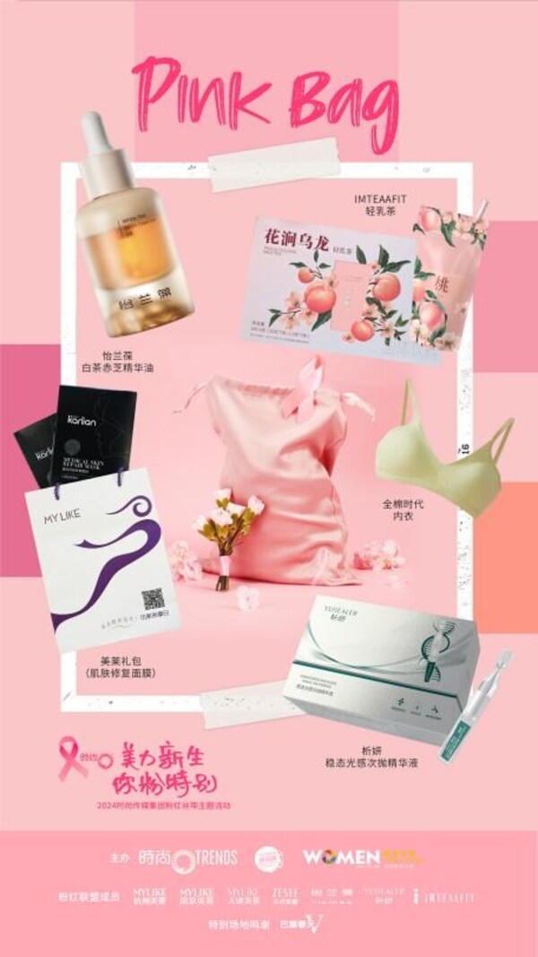 活動(dòng)現(xiàn)場(chǎng)還為嘉賓精心準(zhǔn)備了一年一度的PINK BAG粉紅禮包,由美萊提供的肌膚修護(hù)面膜、析妍穩(wěn)態(tài)光感次拋精華液、怡蘭葆白茶赤芝精華油、IMTEAAFIT輕乳茶共同傳遞此次粉紅絲帶主題活動(dòng)的健康"美力"態(tài)度:愿所有女性都能夠健康、美麗、有型,被愛(ài)包圍。