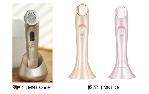 本次進博會展示的LMNT One+及LMNT O?,同為手持式美容儀器,二者皆搭載了微脈沖技術(shù),LMNT One+采用LED光子技術(shù)-633±15nm的紅光和830士15nmNIR紅外光組合,幫助促進皮膚膠原新生、長效抗老。在此基礎(chǔ)上LMNT O?還應(yīng)用了415±15nm的藍光以解決油痘肌皮膚問題,對局部長痘、閉口、出油等皮膚問題有著出色的治療效果。