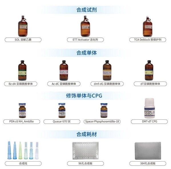 擎科生物子公司迪納興科,專注于DNA和RNA修飾單體的研發(fā)和生產(chǎn),合成原材料年產(chǎn)量達200噸。自主研發(fā)了包括修飾單體&CPG、DNA合成試劑、條狀分子篩、合成柱在內(nèi)的一系列合成產(chǎn)品,已成為國內(nèi)DNA合成試劑的主要供應(yīng)商之一,為擎科生物實現(xiàn)"基因工廠"生產(chǎn)要素的自我聚集,提供了合成原料的支撐。擎科生物依托高品質(zhì)的合成原料進行寡核苷酸合成,進而提供高品質(zhì)基因合成服務(wù),最終推動抗體藥物研發(fā)、生物育種等應(yīng)用領(lǐng)域的發(fā)展。同時,這些合成原料也能滿足核酸藥物開發(fā)更高質(zhì)量要求的需求。
