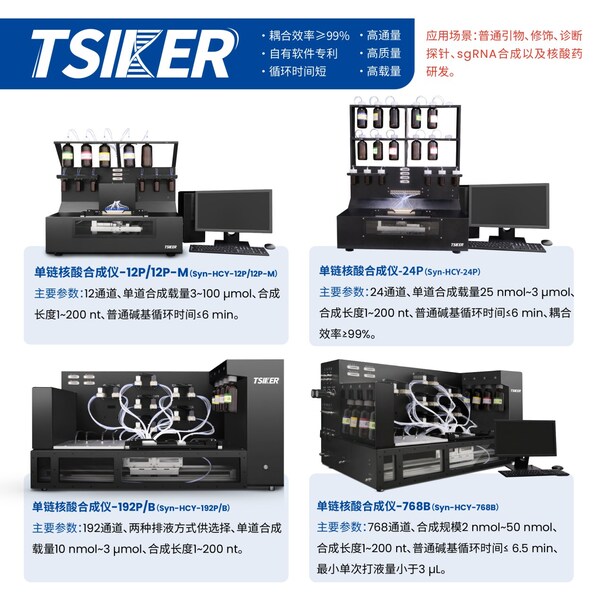 基于擎科生物多年的合成領(lǐng)域研究經(jīng)驗以及原始數(shù)據(jù)累積分析,擁有高質(zhì)量、高載量、高通量3個技術(shù)平臺,在2014年成功研制出單鏈核酸合成儀-192B,并在隨后的幾年開發(fā)出可應(yīng)用于不同領(lǐng)域具備差異化功能的產(chǎn)品系列:單鏈核酸合成儀-12P、單鏈核酸合成儀-24P、單鏈核酸合成儀-192P/B、單鏈核酸合成儀-768B,并在2023年4月發(fā)布擎核TsiKer?高載量合成儀。