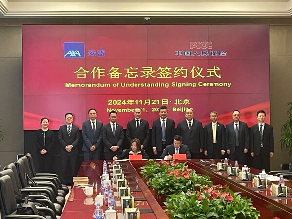北京2024年11月29日 /美通社/ -- 近日,法國安盛集團(tuán)(AXA)與中國人民保險集團(tuán)股份有限公司(以下簡稱:人保集團(tuán))在北京人保集團(tuán)總部簽署了合作備忘錄。雙方將基于各自優(yōu)勢,通過采取創(chuàng)新合作交流模式,在全球范圍內(nèi)深入探索國際合作、產(chǎn)品研發(fā)、技術(shù)創(chuàng)新,共同促進(jìn)全球保險市場可持續(xù)健康發(fā)展。人保集團(tuán)總裁趙鵬、人保集團(tuán)副總裁兼人保財險總裁于澤、人保集團(tuán)副總裁才智偉、人保集團(tuán)合作部總經(jīng)理張海軍、人保集團(tuán)保險部總經(jīng)理彭鋼、人保再保險總裁張青, 安盛集團(tuán)首席執(zhí)行官托馬斯?布博 (Thomas Buberl)、安盛大中華區(qū)首席執(zhí)行官尹玄慧、安盛天平財產(chǎn)保險有限公司首席執(zhí)行官左偉豪、安盛天平總經(jīng)理助理曾翔、安盛天平總經(jīng)理助理兼總精算師殷兆男、安盛天平首席市場營銷官戴思遠(yuǎn)等多位嘉賓蒞臨簽約現(xiàn)場。