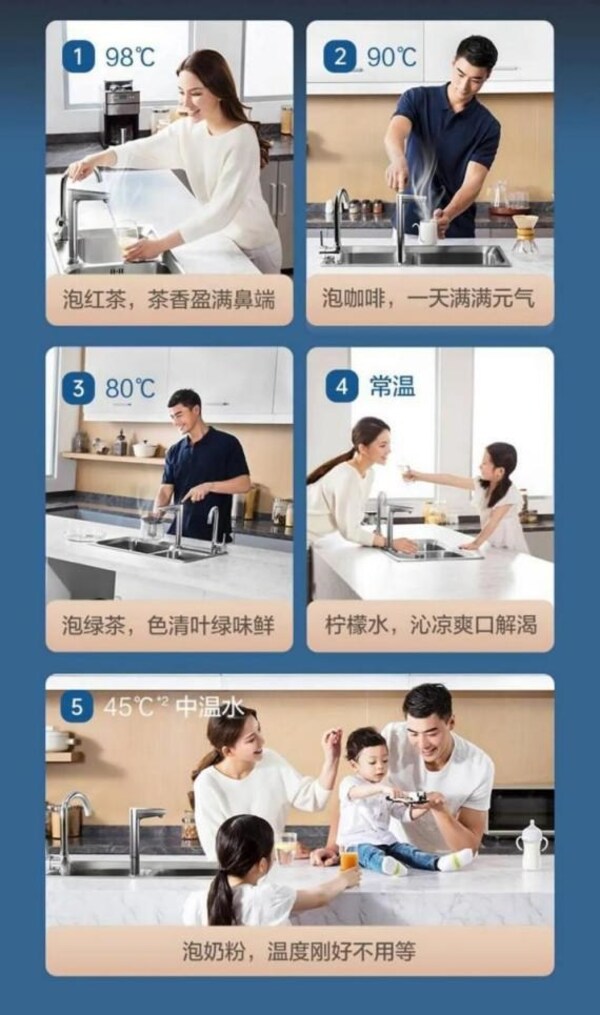 有了"櫥下冷熱即飲凈水機",在烹飪、飲水、洗漱等方面無需等待,煲湯羹可以直接用熱開水燉煮;浸泡食材可以直接加入常溫凈水。2種流量*隨心切換,無需再反復(fù)等水燒開、等水放涼,健康又便捷,生活品質(zhì)大幅提升。