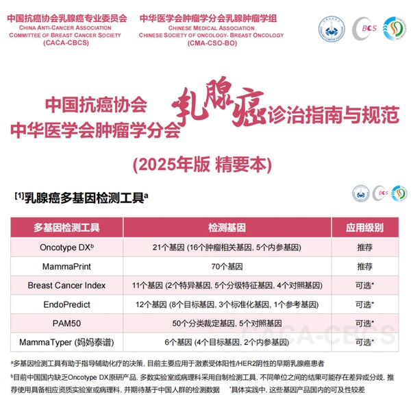 湖州德清2024年12月24日 /美通社/ -- 日前,由中國抗癌協(xié)會(huì)乳腺癌專業(yè)委員會(huì)(CACA-CBCS)和中華醫(yī)學(xué)會(huì)腫瘤學(xué)分會(huì)乳腺腫瘤學(xué)組主導(dǎo)編撰的《乳腺癌診治指南與規(guī)范(2025年版精要本)》在上海正式發(fā)布,新增了多基因檢測工具媽媽泰譜®(MammaTyper®),以更好地滿足臨床對于激素受體(ER/PR)陽性且HER2陰性的早期乳腺癌患者精準(zhǔn)預(yù)后和指導(dǎo)輔助化療決策方面的需求。