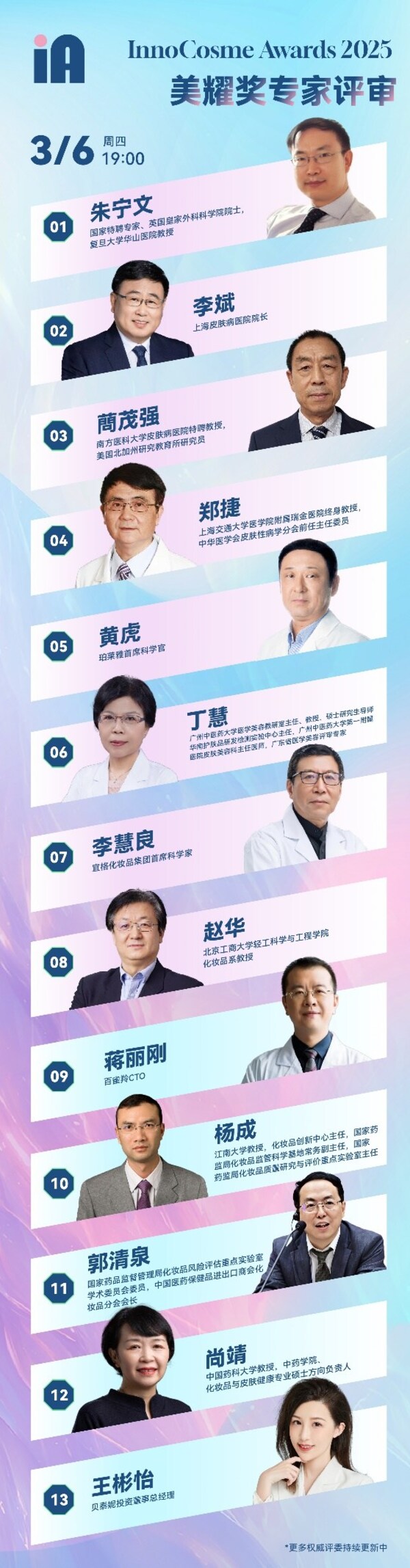 面向群體:在2024年1月1日-2024年12月31日間,在化妝品行業(yè)產(chǎn)生較大影響力或有卓越貢獻(xiàn)的護(hù)膚品品牌團(tuán)隊(duì)核心人物、護(hù)膚品行業(yè)KOL/達(dá)人、護(hù)膚品行業(yè)自媒體從業(yè)者。