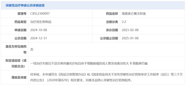 瑞基奧侖賽注射液(簡稱relma-cel,其腫瘤適應(yīng)癥的商品名:倍諾達(dá)®)是藥明巨諾在巨諾醫(yī)療(一家百時美施貴寶的公司)的CAR-T細(xì)胞工藝平臺的基礎(chǔ)上,自主開發(fā)的一款靶向CD19的自體CAR-T細(xì)胞免疫治療產(chǎn)品。作為藥明巨諾的首款產(chǎn)品,瑞基奧侖賽注射液已被中國國家藥品監(jiān)督管理局批準(zhǔn)三項(xiàng)適應(yīng)癥,包括治療經(jīng)過二線或以上系統(tǒng)性治療后成人患者的復(fù)發(fā)或難治性大B細(xì)胞淋巴瘤(r/r LBCL)、治療經(jīng)過二線或以上系統(tǒng)性治療的成人難治性或24個月內(nèi)復(fù)發(fā)的濾泡性淋巴瘤(r/r FL),以及治療經(jīng)過包括布魯頓酪氨酸激酶抑制劑(BTKi)治療在內(nèi)的二線以及系統(tǒng)性治療的成人復(fù)發(fā)或難治性套細(xì)胞淋巴瘤(r/r MCL),成為中國首個獲批為1類生物制品的CAR-T產(chǎn)品。倍諾達(dá)®是中國目前唯一一款同時獲得"重大新藥創(chuàng)制"專項(xiàng)、新藥上市申請優(yōu)先審評資格及突破性治療藥物認(rèn)定等三項(xiàng)殊榮的CAR-T細(xì)胞免疫治療產(chǎn)品。