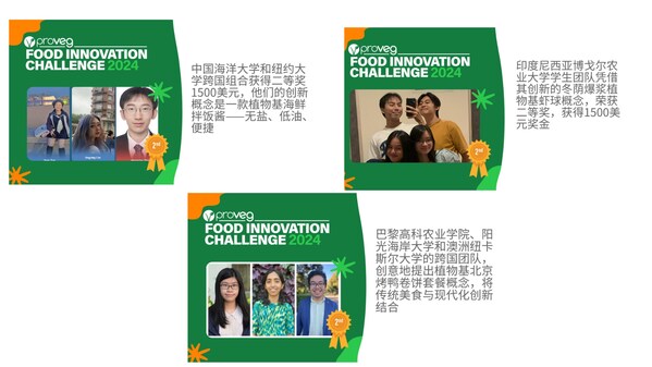 二等獎(jiǎng)的三支隊(duì)伍分別來自中國海洋大學(xué)和紐約大學(xué)跨國組合團(tuán)隊(duì)"VeggieAlgaeSeafusion Sauce",巴黎農(nóng)科技大學(xué)、陽光海岸大學(xué)、澳大利亞紐卡斯?fàn)柎髮W(xué)跨國組合團(tuán)隊(duì)"VegVenture",以及印度尼西亞博卡農(nóng)大學(xué)學(xué)生團(tuán)隊(duì)"Burstatic",各自贏得了1500美元的獎(jiǎng)金。