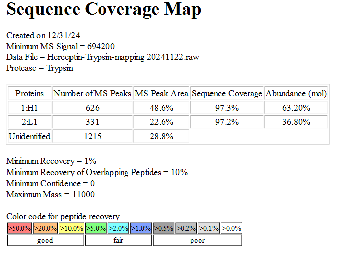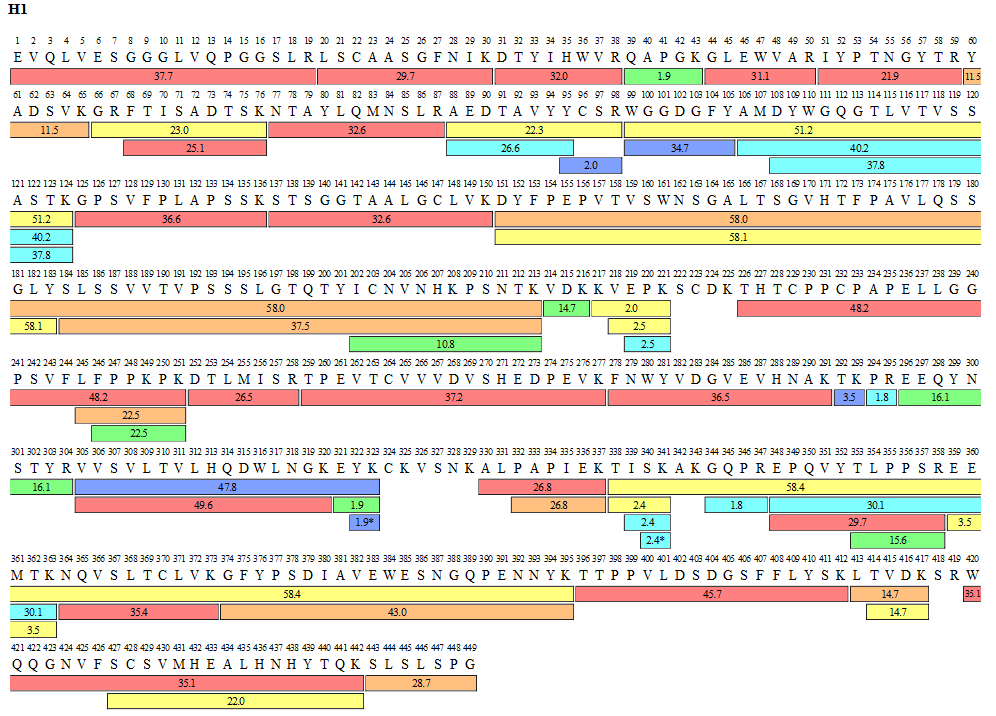 ▲ Herceptin序列覆蓋率(Trypsin酶切結(jié)果)