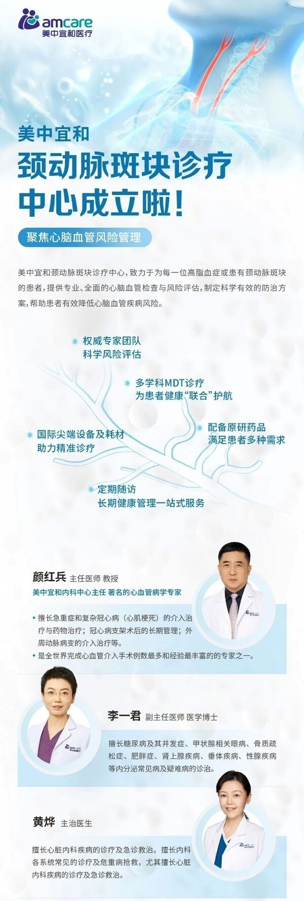北京2025年3月28日 /美通社/ -- 近日,美中宜和正式成立頸動脈斑塊診療中心,致力于為每一位高脂血癥或患有頸動脈斑塊的患者,提供專業(yè)、全面的心腦血管檢查與風險評估,幫助患者有效降低心腦血管疾病風險,將健康隱患扼殺在萌芽狀態(tài),讓生活遠離心梗、腦梗等致命疾病的威脅。