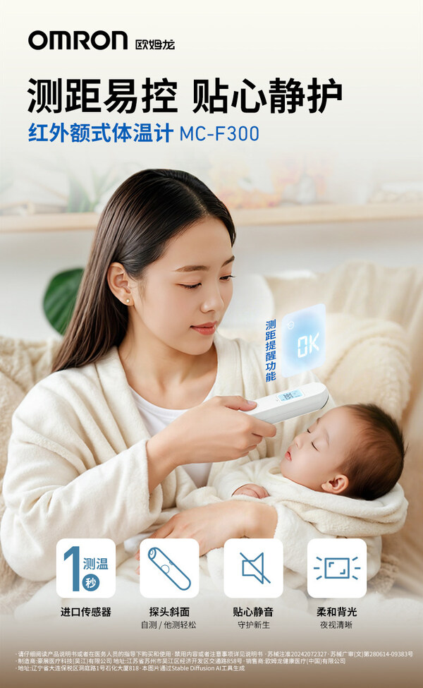 上海 2025年5月6日 /美通社/ -- 歐姆龍健康醫(yī)療(以下簡(jiǎn)稱(chēng)"歐姆龍")今日正式推出全新紅外額式電子體溫計(jì)MC-F300,為家庭體溫管理提供便捷、精準(zhǔn)、智能的新選擇。該產(chǎn)品不僅積極響應(yīng)國(guó)家無(wú)汞化政策,進(jìn)一步推動(dòng)綠色醫(yī)療的發(fā)展,也體現(xiàn)了歐姆龍?jiān)陬A(yù)防醫(yī)療領(lǐng)域持續(xù)創(chuàng)新的承諾。