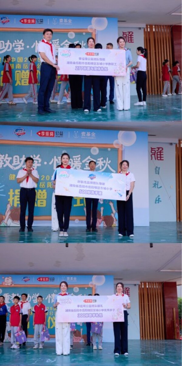 岳陽樓區(qū)委書記曾平原在活動中強(qiáng)調(diào),此次公益活動為地方教育注入新活力,并充分肯定了舒膚佳與李佳琦公益團(tuán)隊(duì)的善舉,呼吁更多企業(yè)及社會力量參與,惠及廣大師生。在區(qū)領(lǐng)導(dǎo)見證下,舒膚佳與李佳琦公益團(tuán)隊(duì)向教師代表捐贈了健康守護(hù)物資及送上了教師節(jié)禮物,并向家庭困難學(xué)生和低收入家庭學(xué)生發(fā)放助學(xué)金,同時(shí)為優(yōu)秀學(xué)生及學(xué)生干部贈送含洗手液的開學(xué)禮包,以多元方式支持教育、關(guān)愛師生。